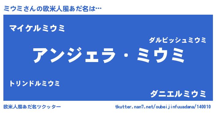 | ポケモン風あだ名 | 『ミウゴンZ』『ミウチュウ』 |