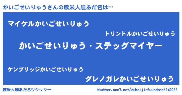 | ヒーロー風カッコイイあだ名 | 『スーパーカイゴセイリュウ』 |