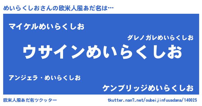 | 男性向けラノベタイトル風あだ名 | 『めいらくしおの嫁は女の子じゃないと思った?』 |