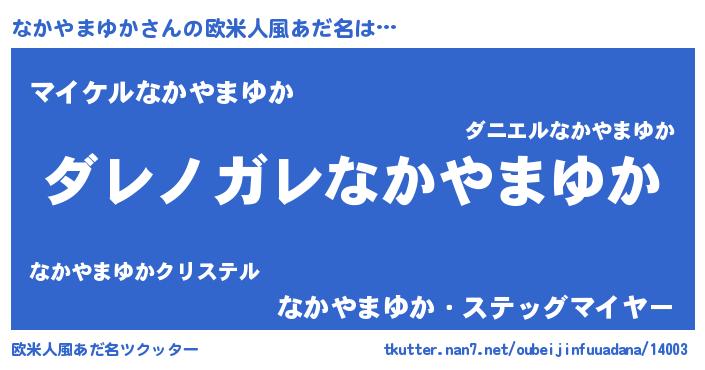 | 男性向けラノベタイトル風あだ名 | 『この素晴らしい世界になかやまゆかを!』 |