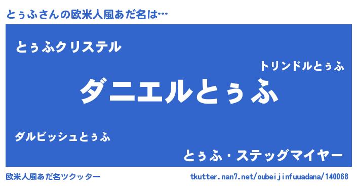 | 料理風あだ名 | 『とぅふのトマト煮』『とぅふごはん』 |
