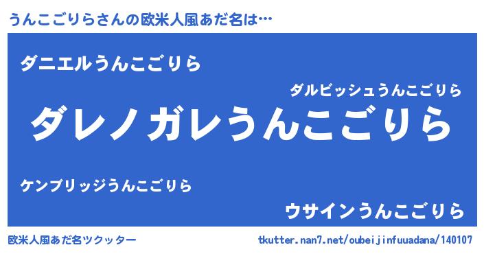 | 意味不明あだ名 | 『住所不定無職うんこごりら(11歳)』 |
