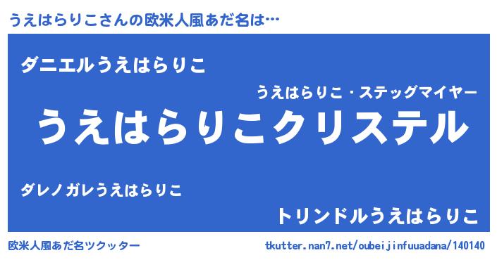 | 意味不明あだ名 | 『うえはらりこフォーエバー』 |