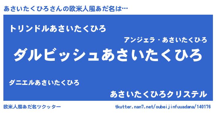 | 意味不明あだ名 | 『永久保存あさいたくひろ』 |