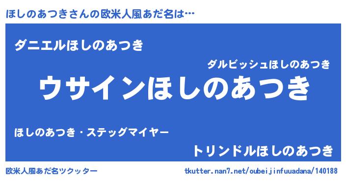 | 女子向けラノベタイトル風あだ名 | 『ほしのあつきの卵を拾いまして』 |