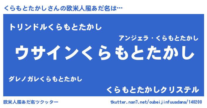 | 男性向けラノベタイトル風あだ名 | 『ダンジョンにくらもとたかしを求めるのは間違っているだろうか』 |