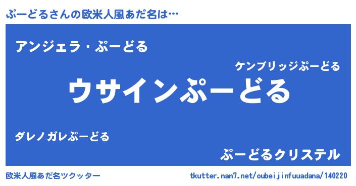| 男性向けラノベタイトル風あだ名 | 『ダンジョンにぷーどるを求めるのは間違っているだろうか』 |