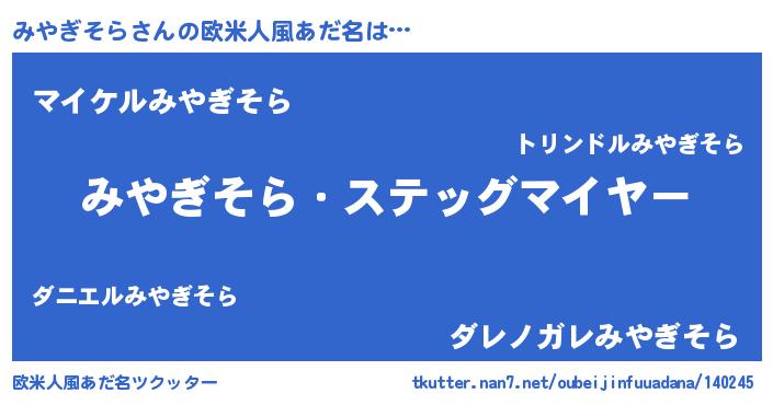 | 胡散臭い通販商品みたいなあだ名 | 『億万長者になれるブレスレット…その名も「みやぎそら」』 |