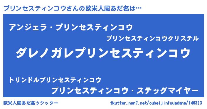 | 男性向けラノベタイトル風あだ名 | 『この素晴らしい世界にプリンセスティンコウを!』 |