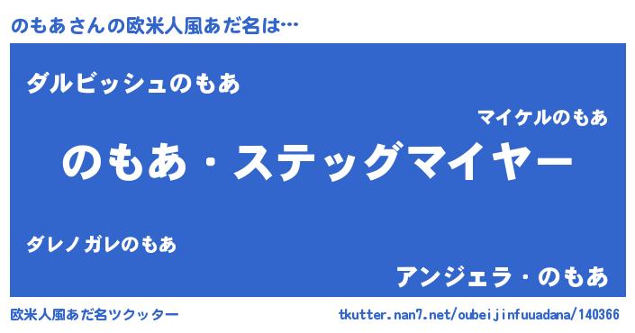 | 男性向けラノベタイトル風あだ名 | 『うちののもあが世界を掌握している!』 |