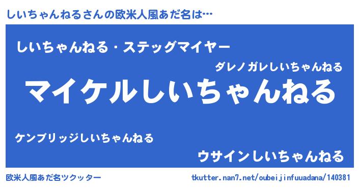 | 男性向けラノベタイトル風あだ名 | 『シイチャンネルアートオンライン』 |