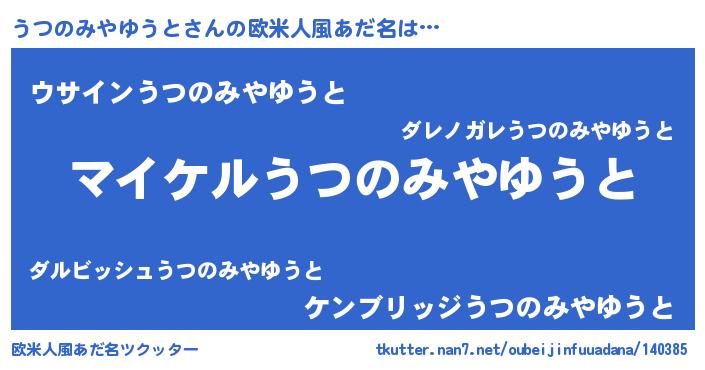 | ポケモン風あだ名 | 『ウツチュウ』『ヒウツノミヤユウト』 |