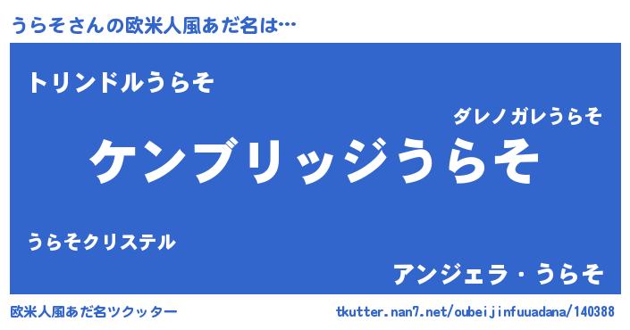| 女子向けラノベタイトル風あだ名 | 『闇のうらそ』『うらその玉の輿計画!』 |
