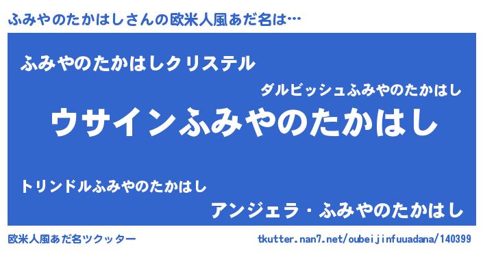 | 男性向けラノベタイトル風あだ名 | 『ふみやのたかはしの嫁は女の子じゃないと思った?』 |
