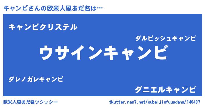 | 男性向けラノベタイトル風あだ名 | 『キャンビの嫁は女の子じゃないと思った?』 |
