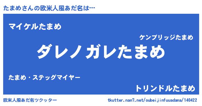 | 男性向けラノベタイトル風あだ名 | 『この素晴らしい世界にたまめを!』 |
