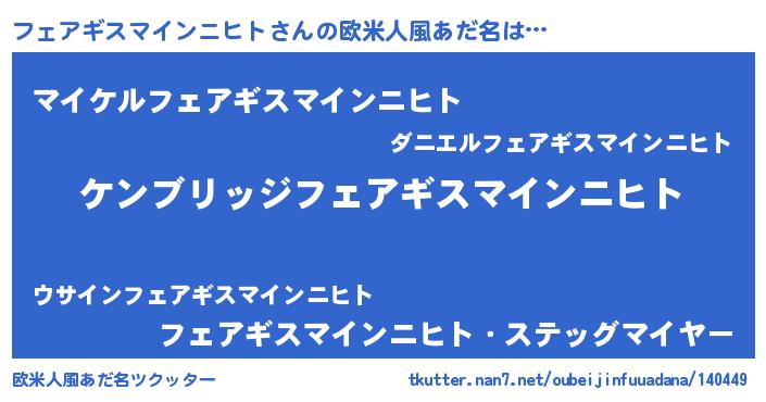 | 男性向けラノベタイトル風あだ名 | 『Re:フェアギスマインニヒトから始める異世界生活』 |