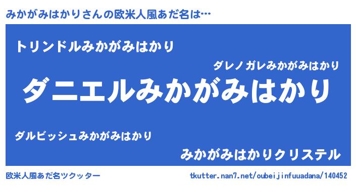 | 男性向けラノベタイトル風あだ名 | 『おまえをオタクにしてやるから、俺をみかがみはかりにしてくれ! 』 |