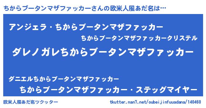 | 男性向けラノベタイトル風あだ名 | 『魔弾の王とちからブータンマザファッカー』 |