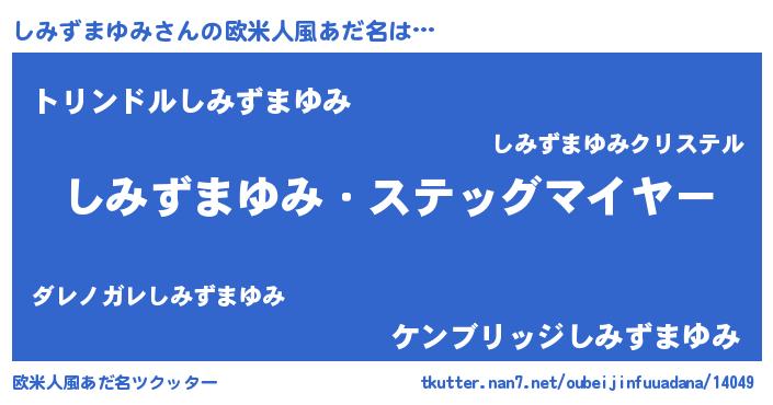 | 男性向けラノベタイトル風あだ名 | 『うちのしみずまゆみが世界を掌握している!』 |