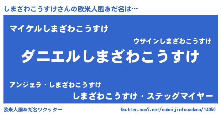 | 男性向けラノベタイトル風あだ名 | 『おまえをオタクにしてやるから、俺をしまざわこうすけにしてくれ! 』 |