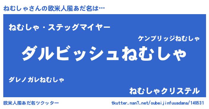 | 男性向けラノベタイトル風あだ名 | 『ねむしゃという概念が存在しない退屈な世界 』 |