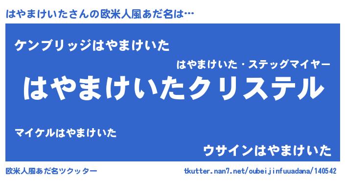 | 意味不明あだ名 | 『はやまけいたフォーエバー』 |