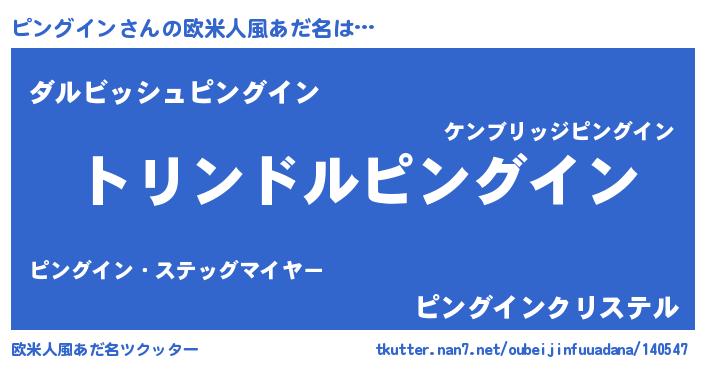 | 意味不明あだ名 | 『エリンギ科ピングイン属』 |