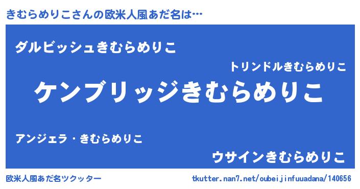 | 男性向けラノベタイトル風あだ名 | 『Re:きむらめりこから始める異世界生活』 |