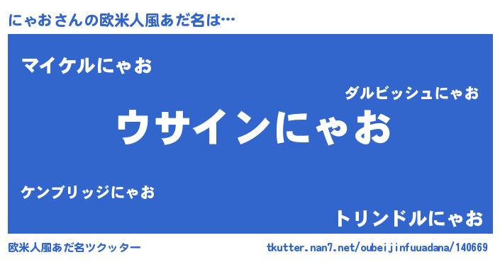 | 男性向けラノベタイトル風あだ名 | 『ダンジョンににゃおを求めるのは間違っているだろうか』 |