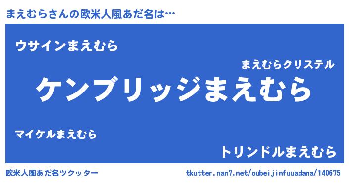 | 女子向けラノベタイトル風あだ名 | 『まえむらなんてお断りですっ。』 |