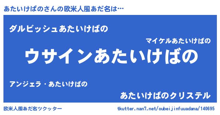 | 胡散臭い通販商品みたいなあだ名 | 『信頼と実績のサプリメント…その名も「あたいけばの」』 |
