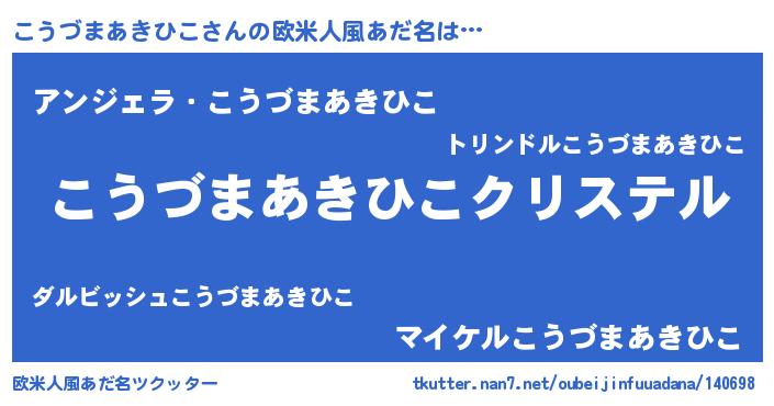 | 女子向けラノベタイトル風あだ名 | 『こうづまあきひこの雑貨屋さん』 |