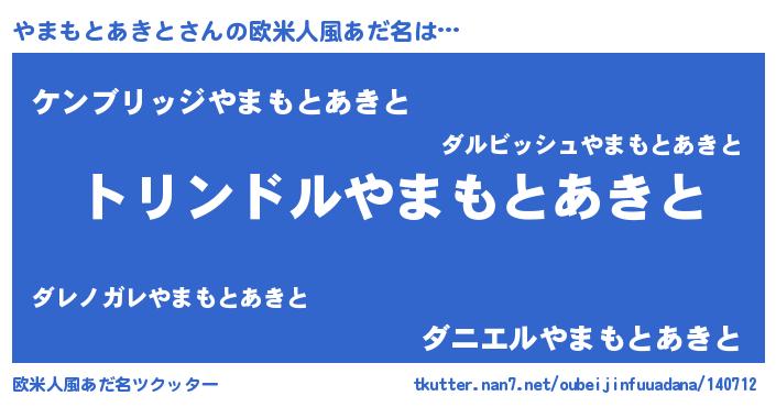 | 男性向けラノベタイトル風あだ名 | 『ヤマモトアキトスレイヤー』 |