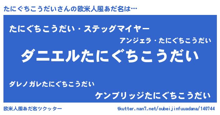 | 女子向けラノベタイトル風あだ名 | 『たにぐちこうだい夫妻のなれそめ』 |