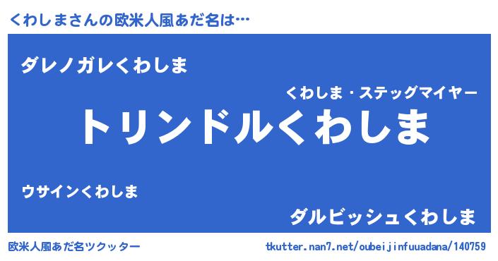 | 男性向けラノベタイトル風あだ名 | 『クワシマスレイヤー』 |