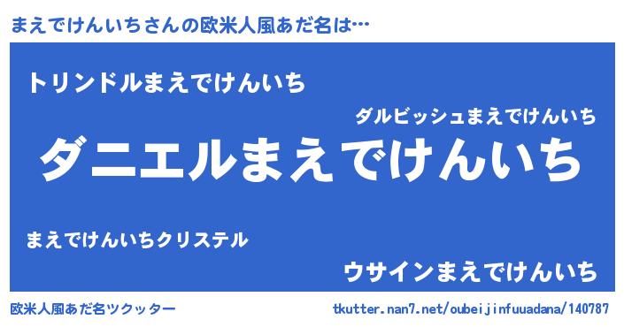 | 男性向けラノベタイトル風あだ名 | 『ノーゲーム・ノーマエデケンイチ』 |