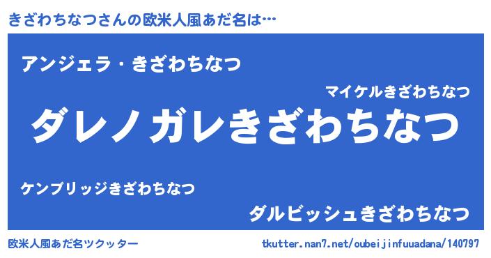 | 男性向けラノベタイトル風あだ名 | 『この素晴らしい世界にきざわちなつを!』 |
