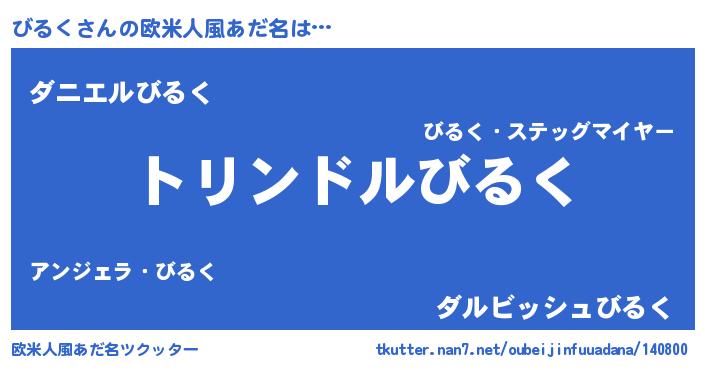 | 女子向けラノベタイトル風あだ名 | 『びるくの玉の輿計画!』 |