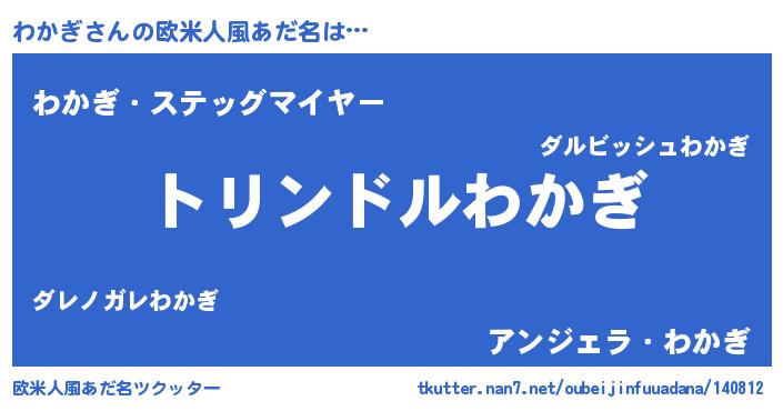 | 男性向けラノベタイトル風あだ名 | 『転生したらわかぎだった件』 |