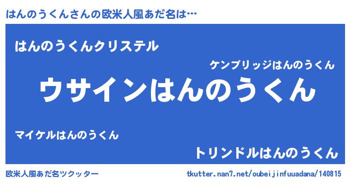 | 男性向けラノベタイトル風あだ名 | 『はんのうくんの嫁は女の子じゃないと思った?』 |