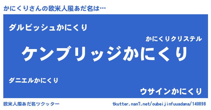 | 女子向けラノベタイトル風あだ名 | 『かにくりストレイドッグス』 |
