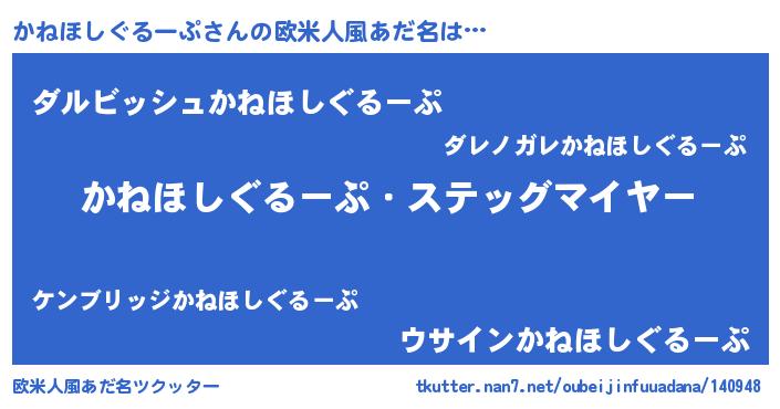 | ヘコむあだ名 | 『かねほしぐるーぷ(笑)』『かねぷりん』 |