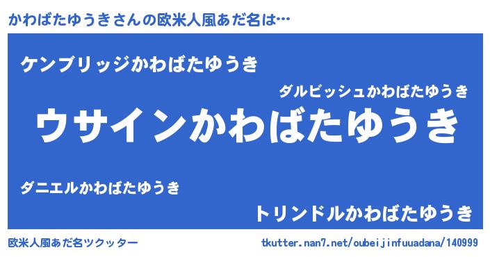 | 女子向けラノベタイトル風あだ名 | 『かわばたゆうきは平凡を望む』 |
