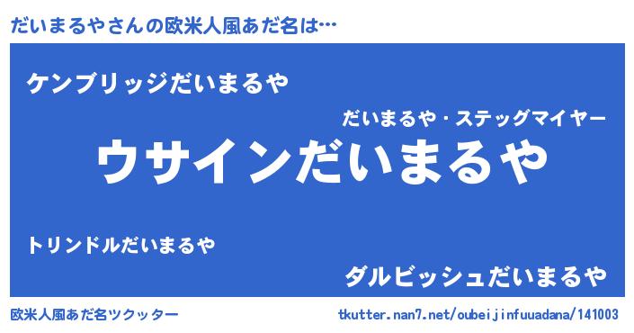 | 男性向けラノベタイトル風あだ名 | 『だいまるやの嫁は女の子じゃないと思った?』 |
