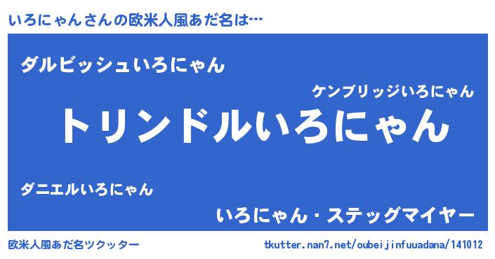 | 男性向けラノベタイトル風あだ名 | 『いろにゃん~年齢イコール彼女いない歴の魔法使い~』 |