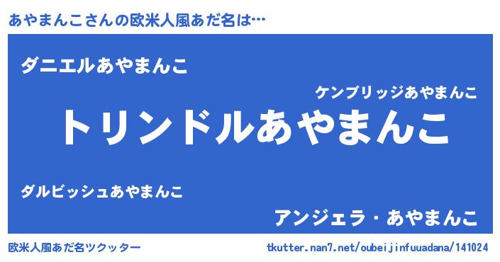 | 男性向けラノベタイトル風あだ名 | 『アヤマンコスレイヤー』 |