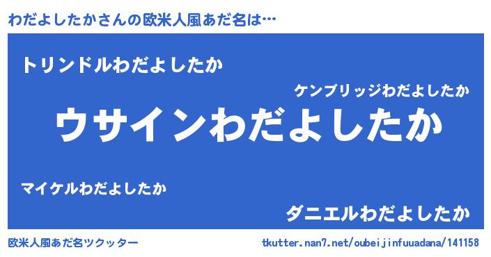 | 男性向けラノベタイトル風あだ名 | 『わだよしたかの嫁は女の子じゃないと思った?』 |