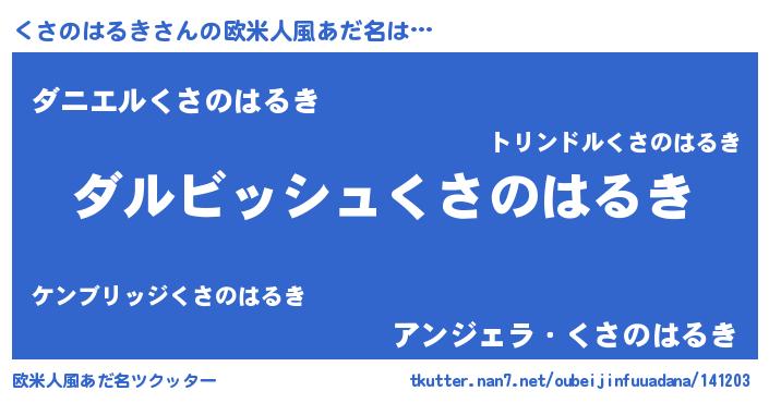 | ヘコむあだ名 | 『くさのはるき(小並感)』『くさを』 |