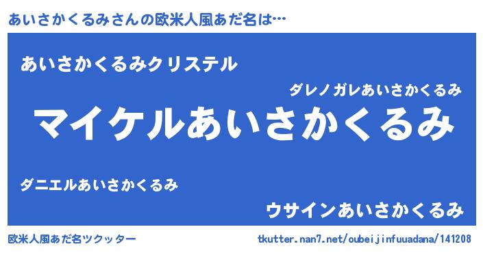 | 胡散臭い通販商品みたいなあだ名 | 『必ず成功するブレスレット…その名も「あいさかくるみ」』 |